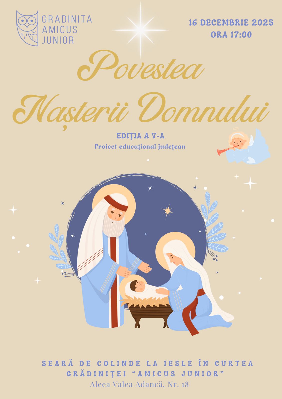 Într-o iesle modestă, într-o noapte liniștită, Iisus Hristos, Fiul lui Dumnezeu, s-a născut pentru a aduce lumii iubire, mântuire și pace. Povestea sa ne învață despre smerenie, dăruire și puterea de a schimba vieți prin fapte simple, dar pline de iubire.